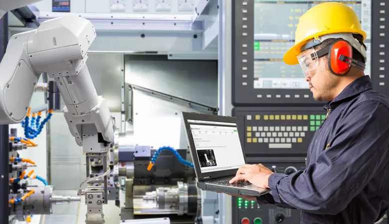 Manufacturing engineer reviewing dashboard results